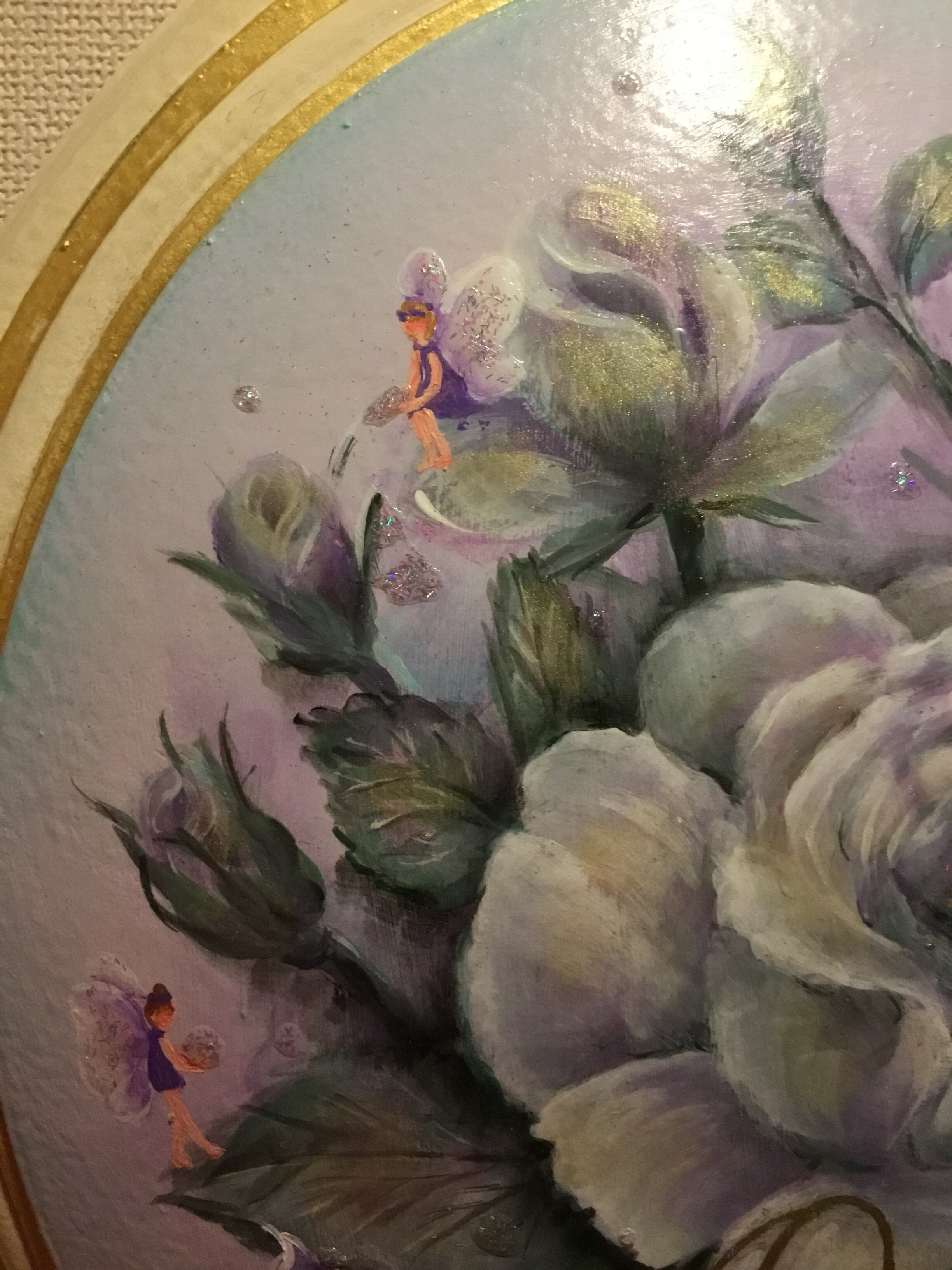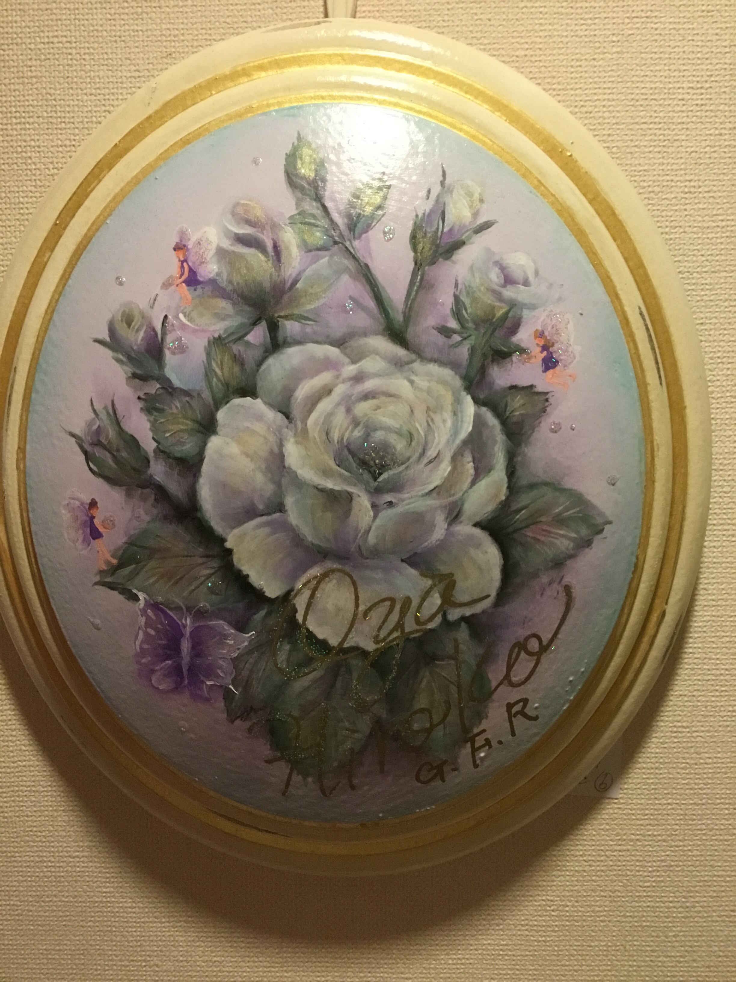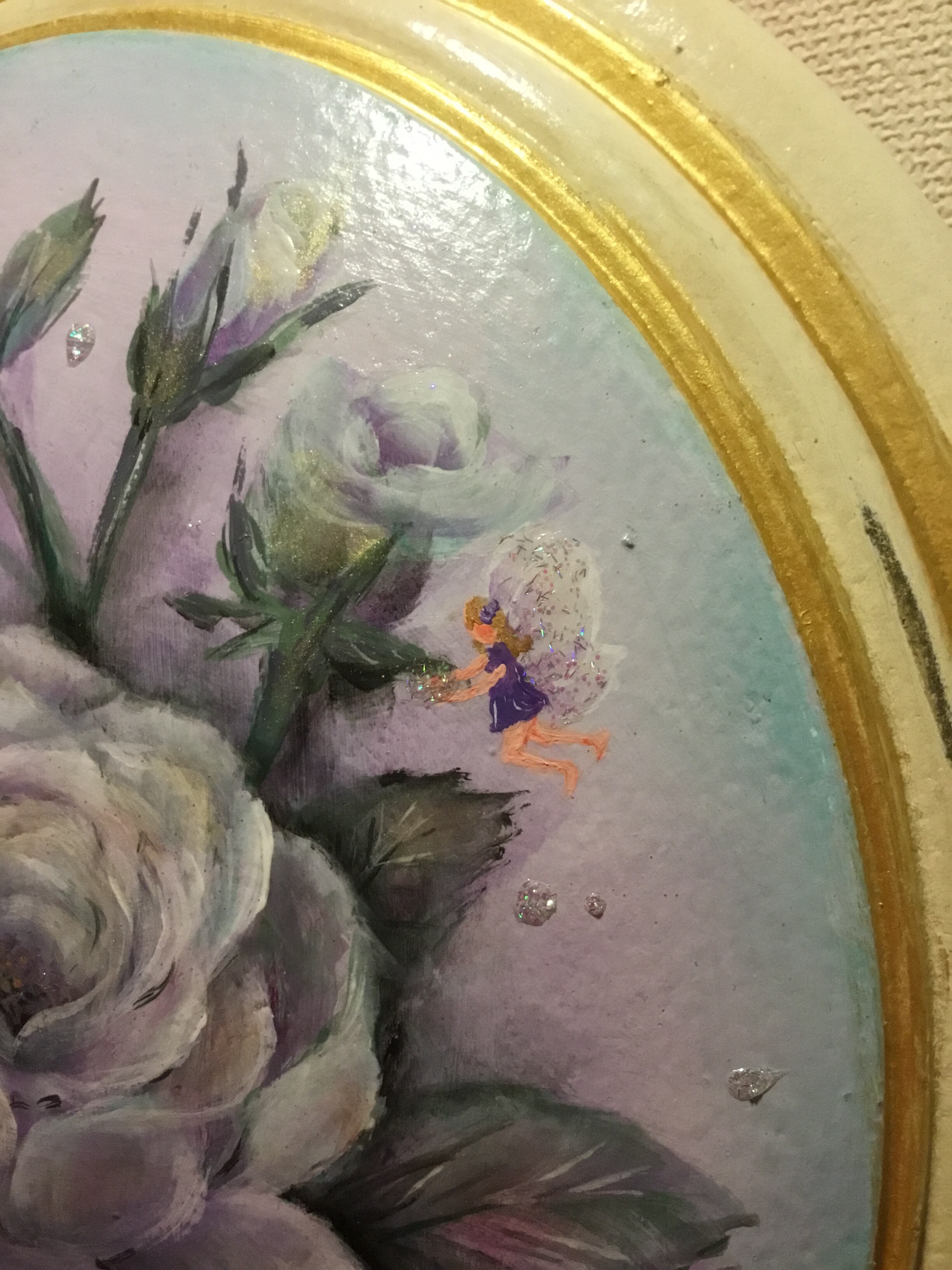 立体画材に描いてます。紫に輝く薔薇と妖精が輝く未来を応援してくれますよ⭐︎