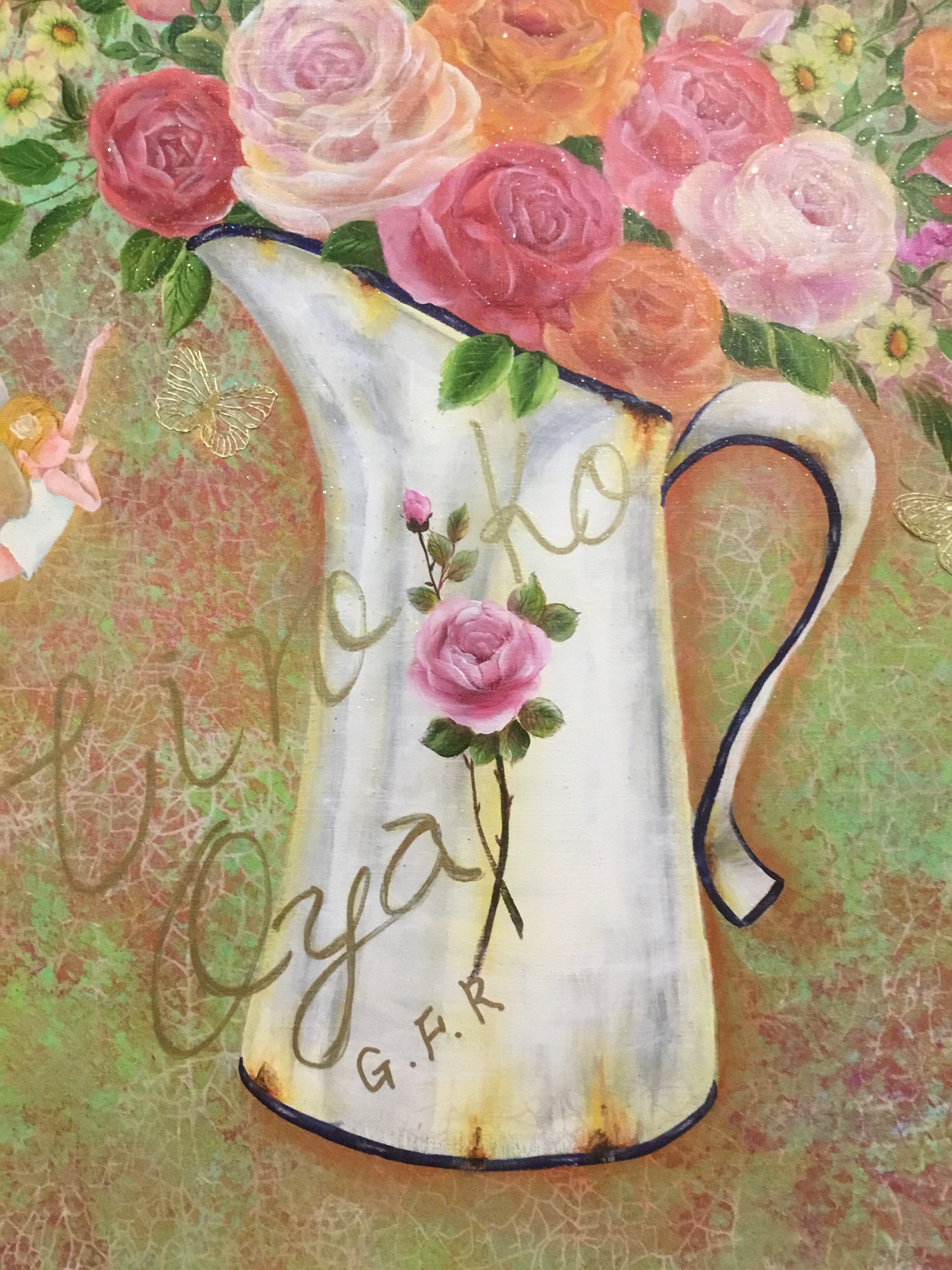 「薔薇の妖精 と ホーローピッチャー」画家:大宅広子