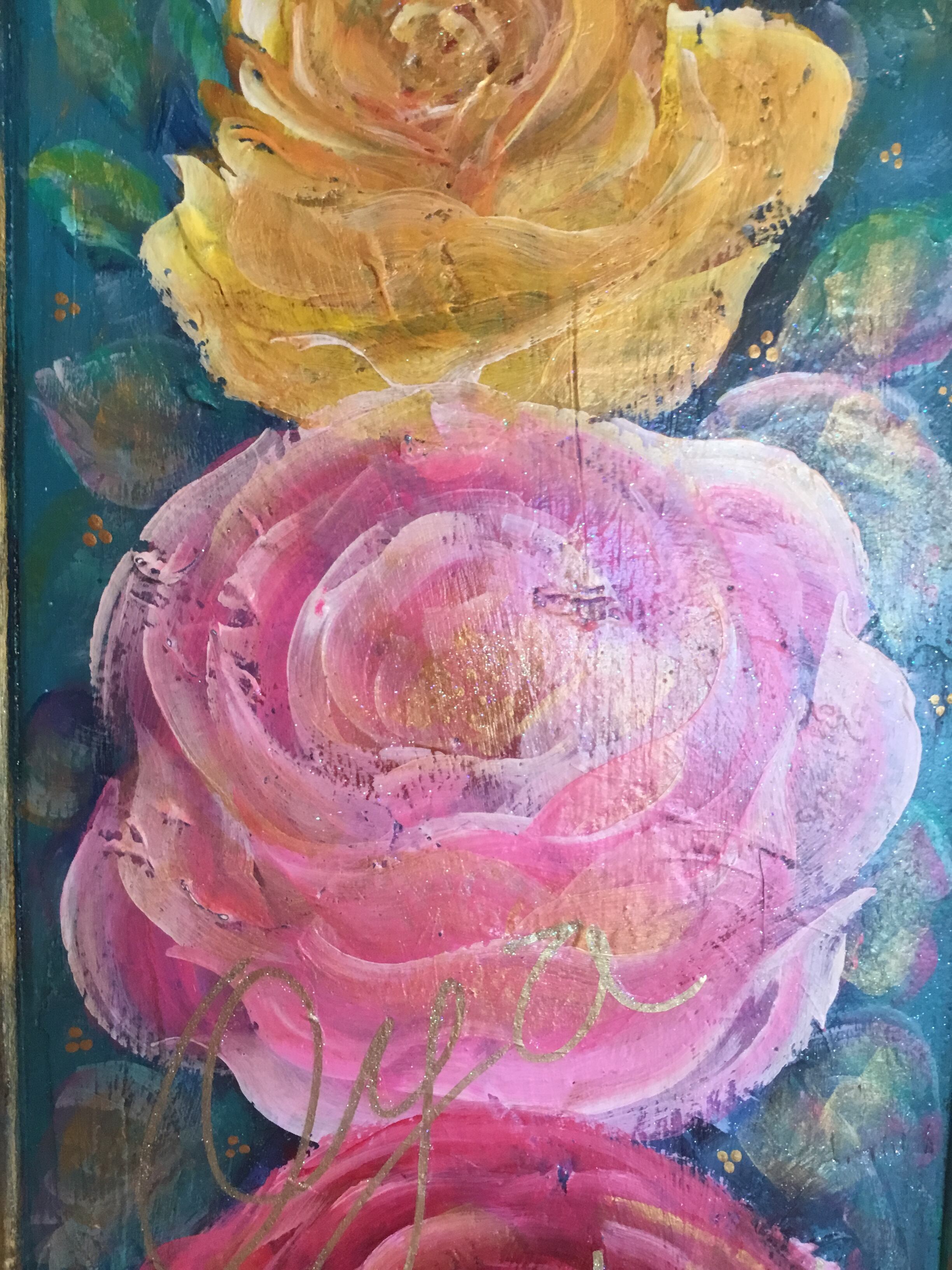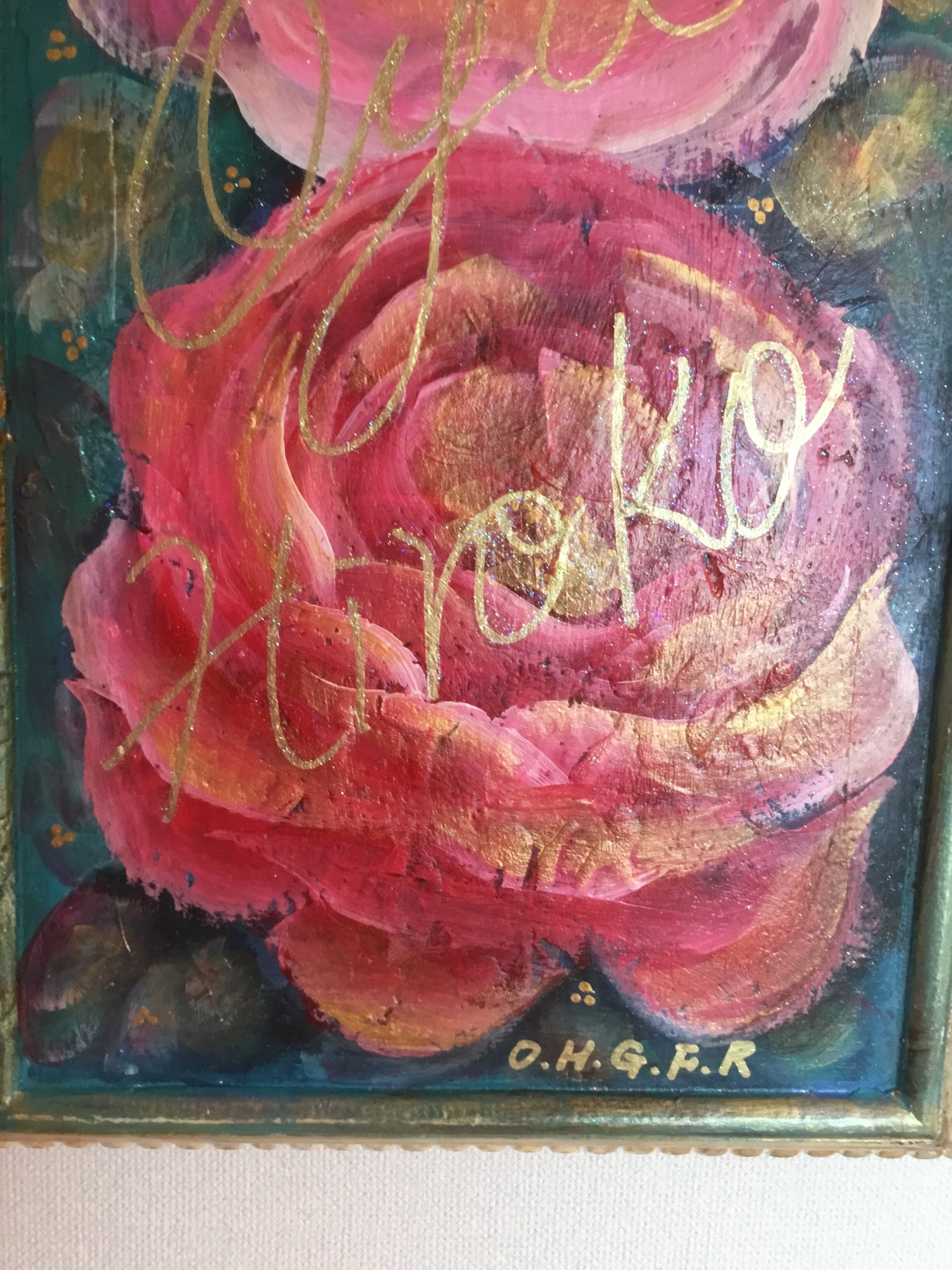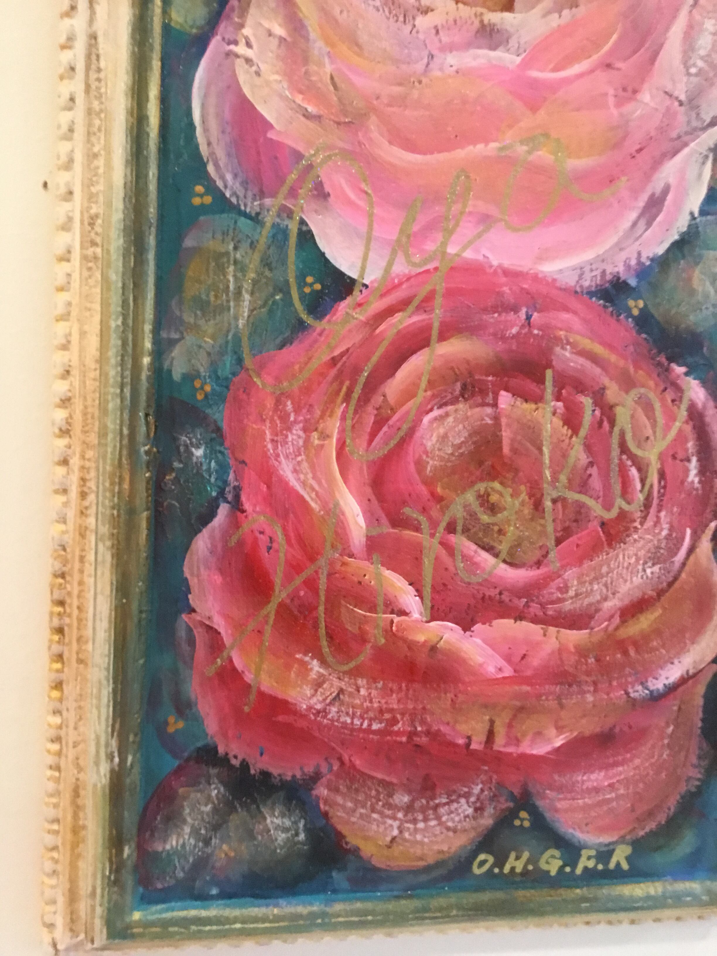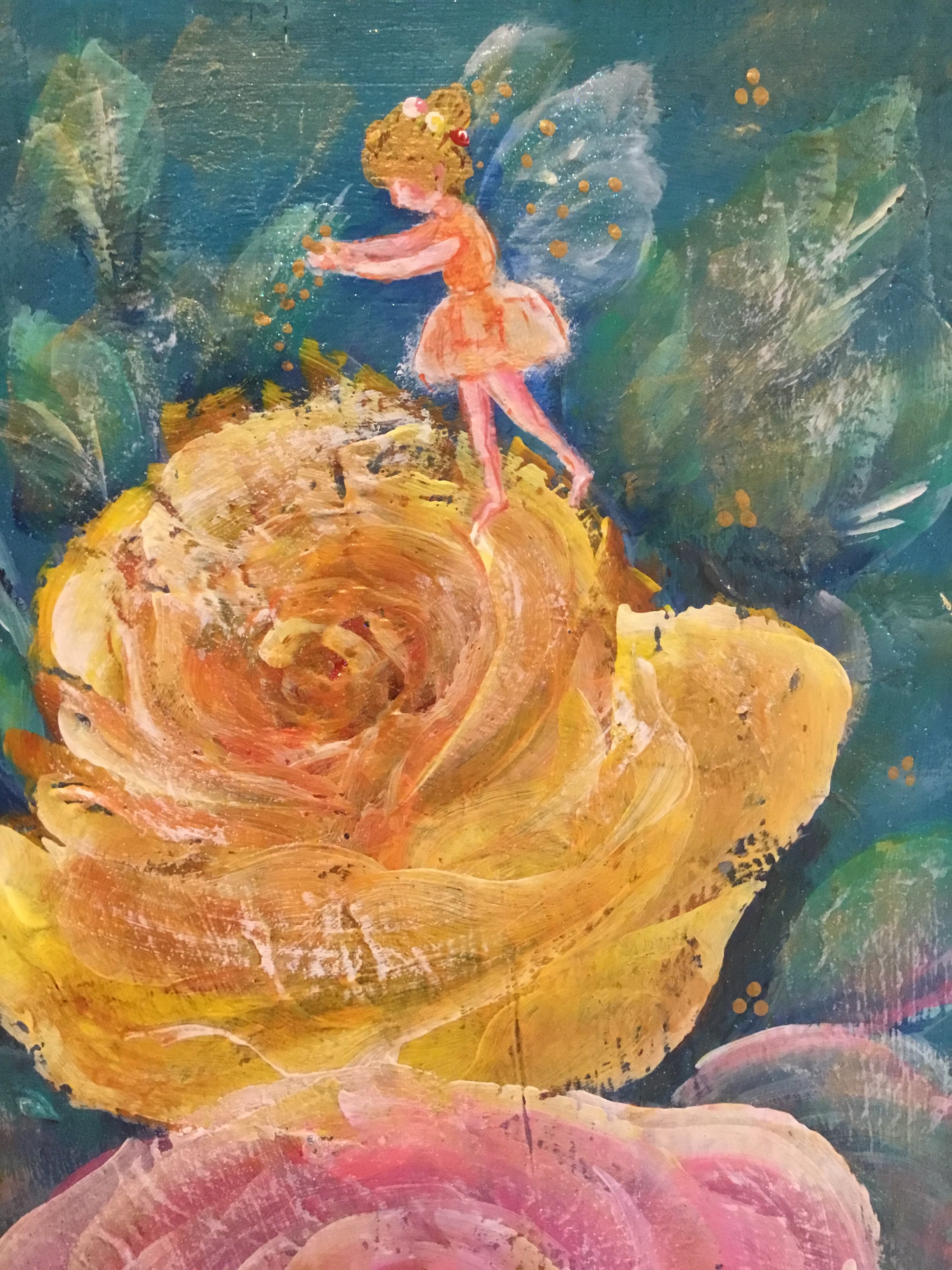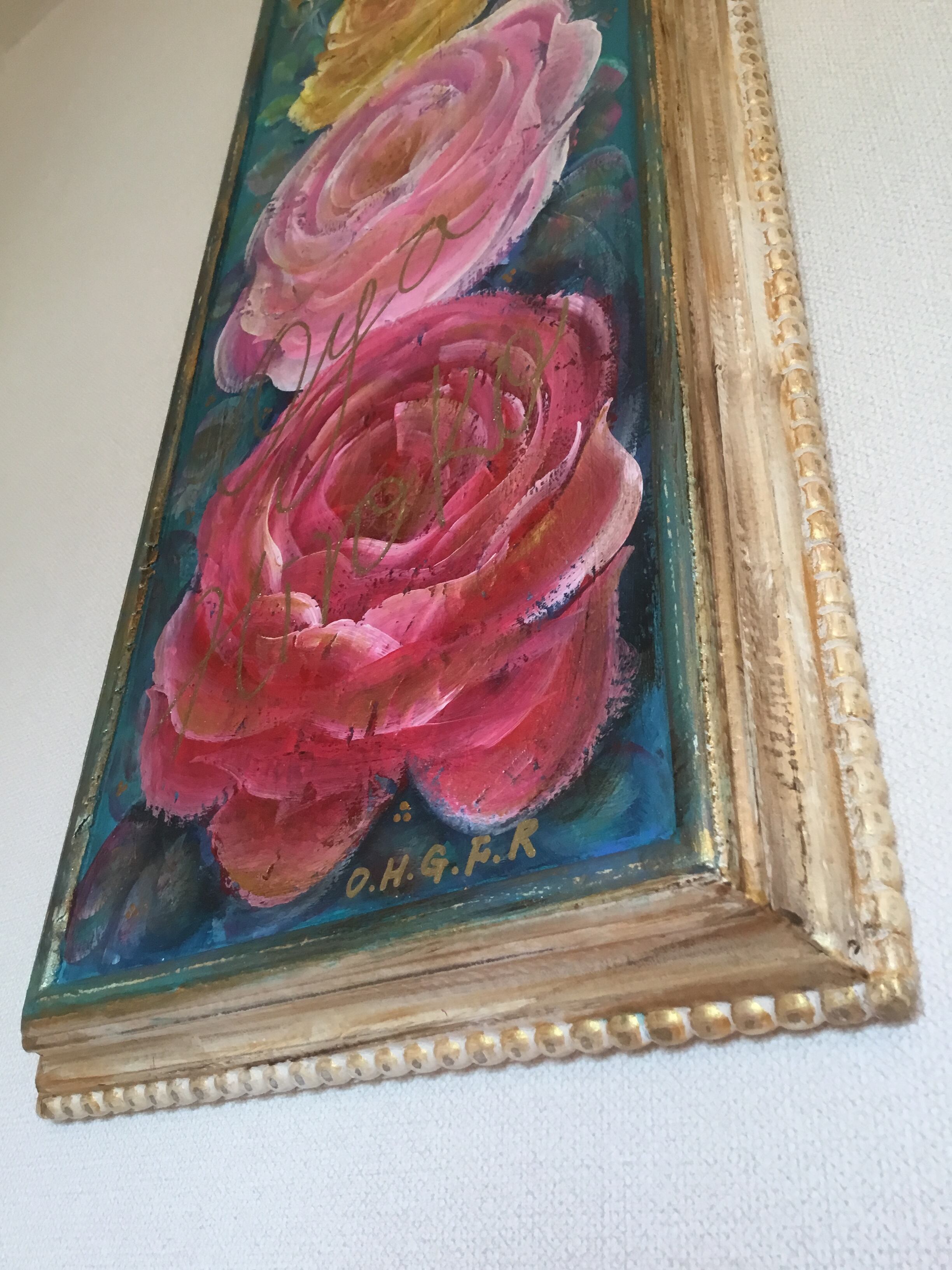 大宅広子のウェディングプレゼント「アンティーク加工 薔薇と妖精の子宝絵 トリプルローズプラスワン」原画