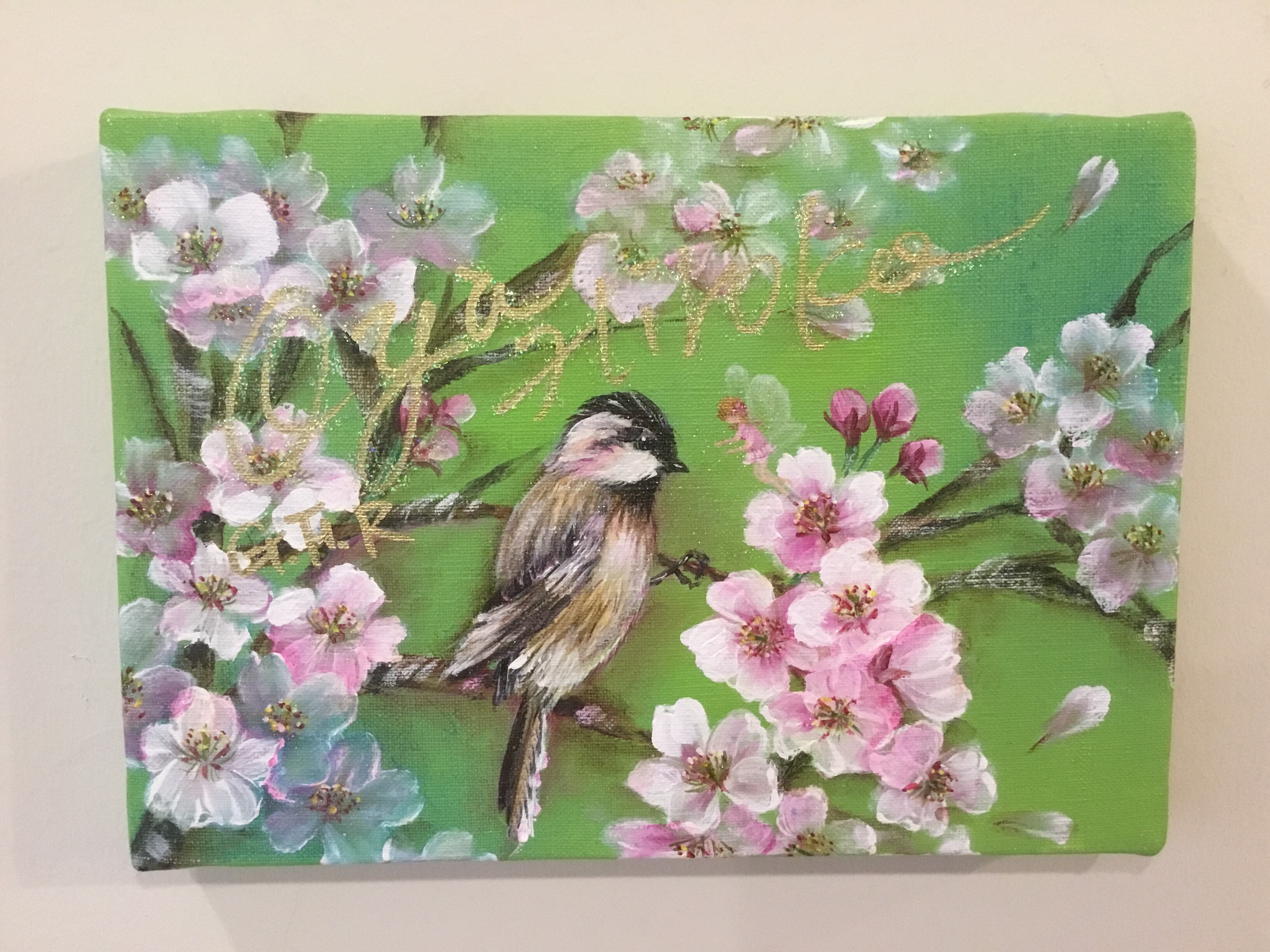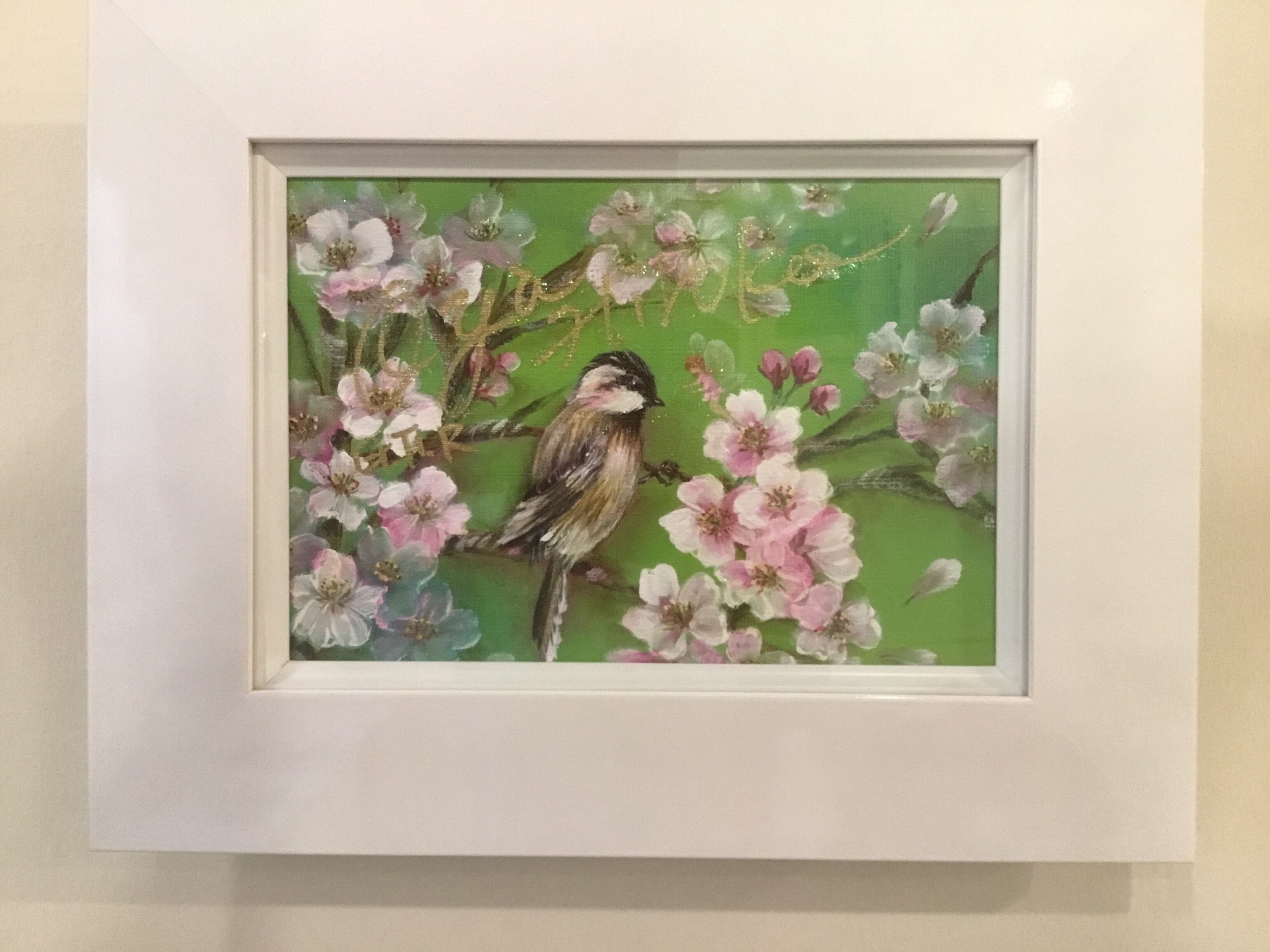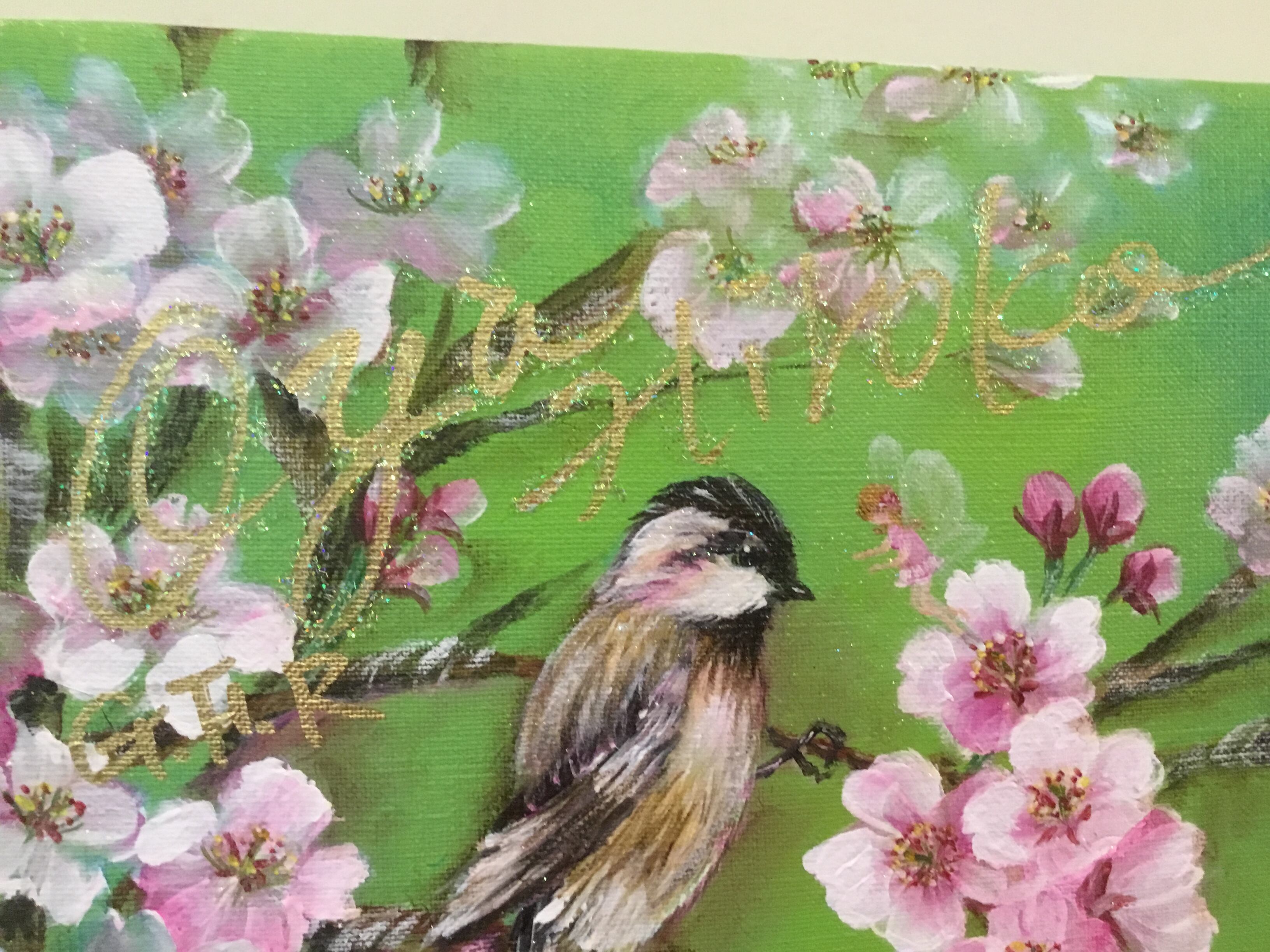 大宅広子ウェディングプレゼント 「桜とシジュウカラの絵 幸せの囀り花のメッセージ」