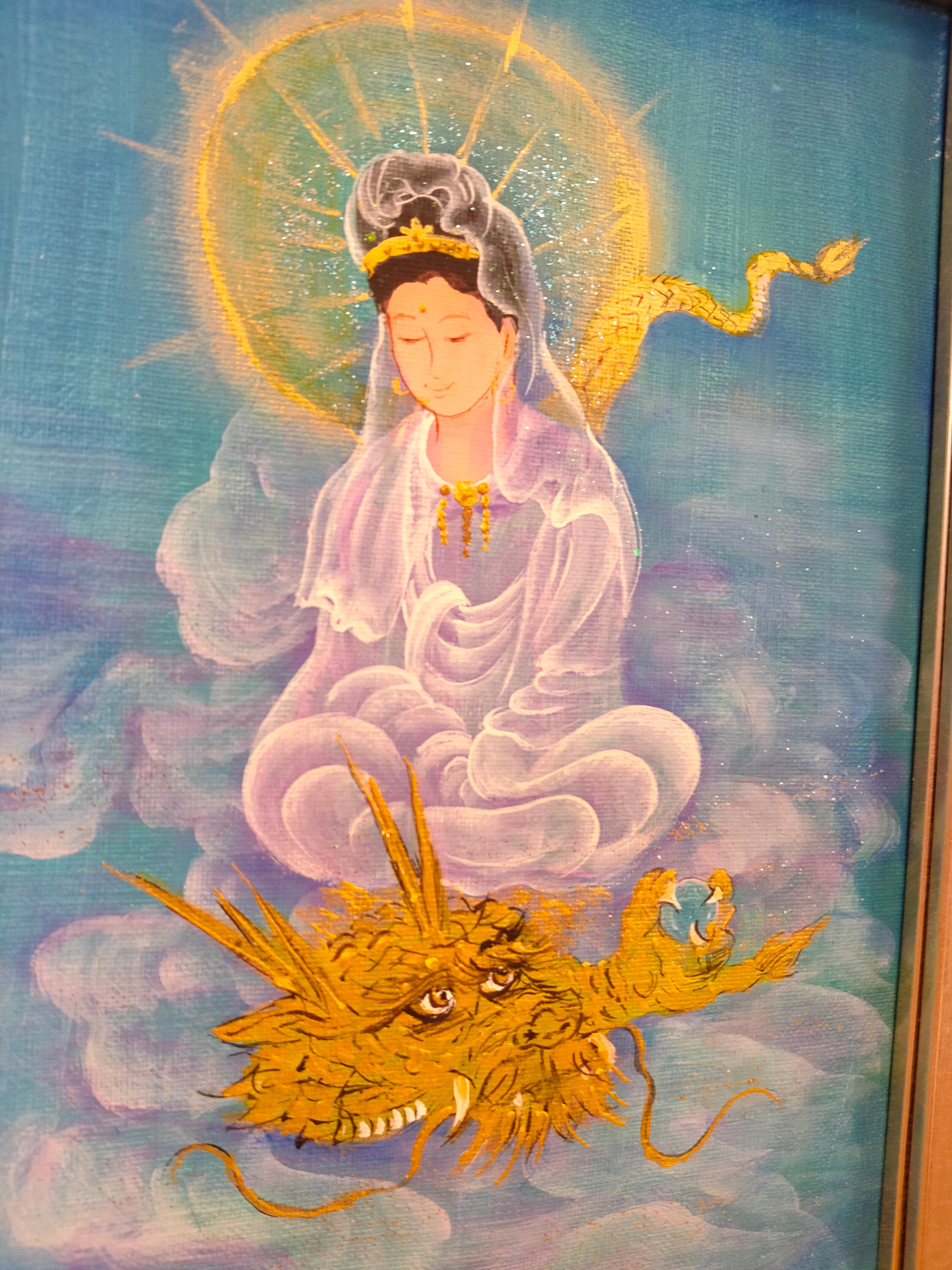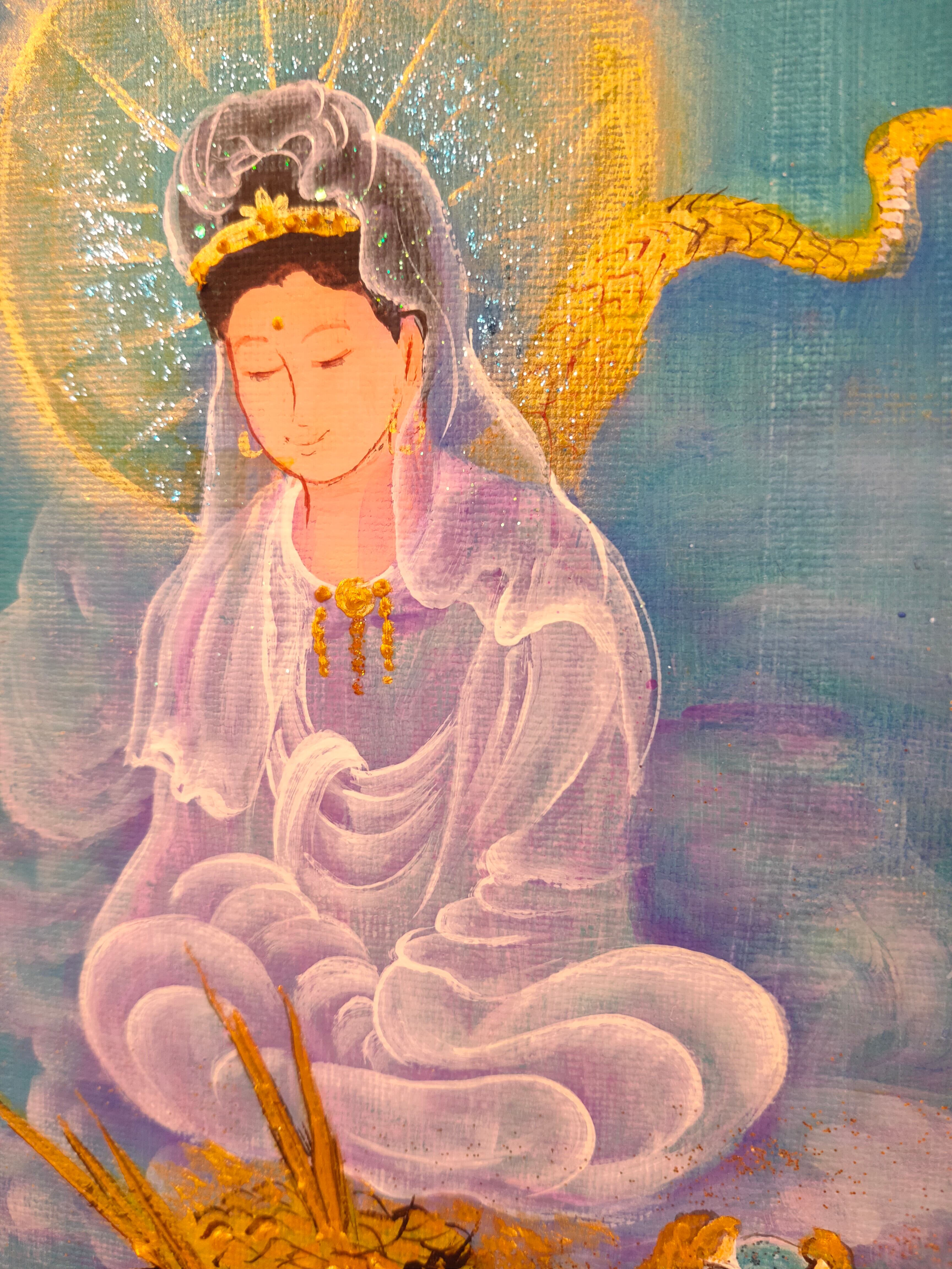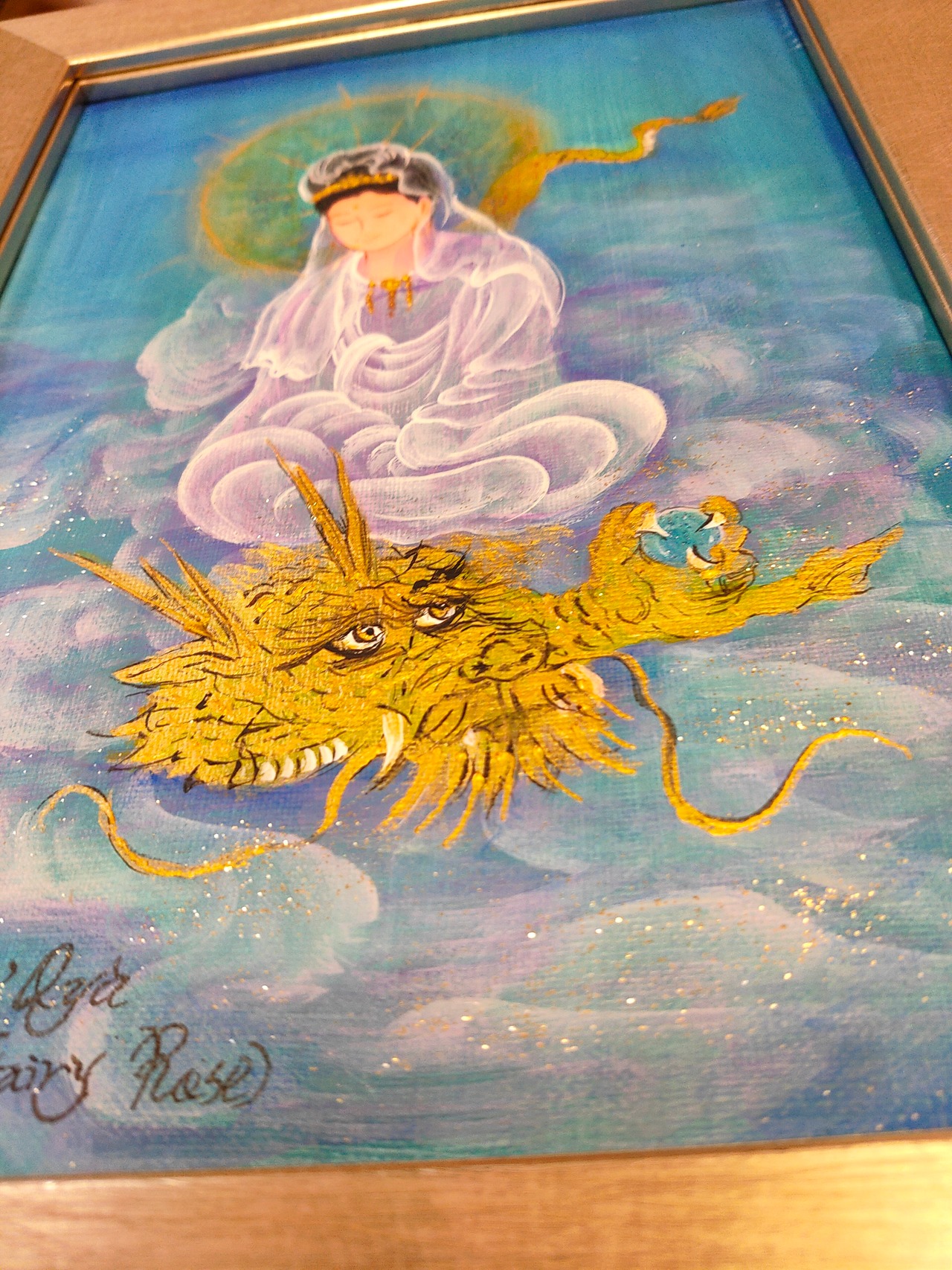 龍の力を自在に操り、幸運をもたらす観音様を描きました♪