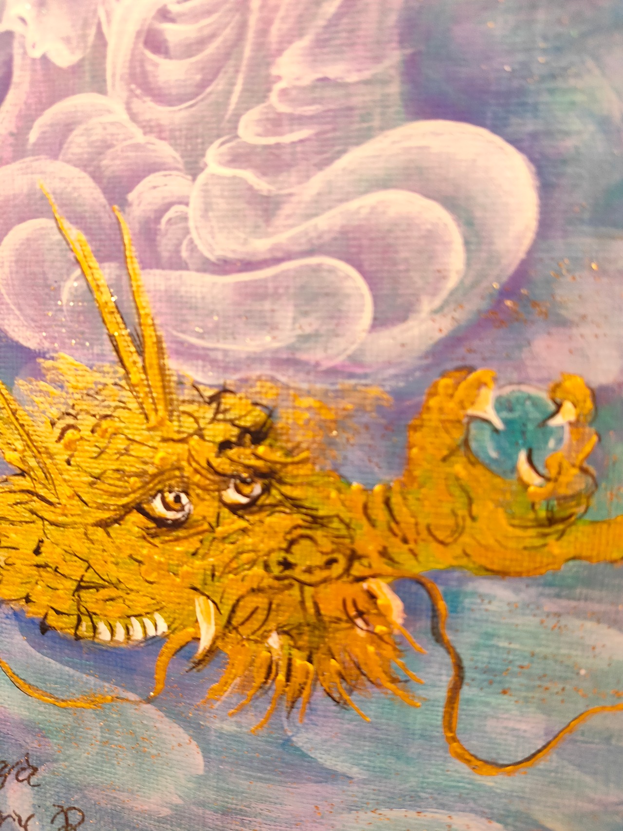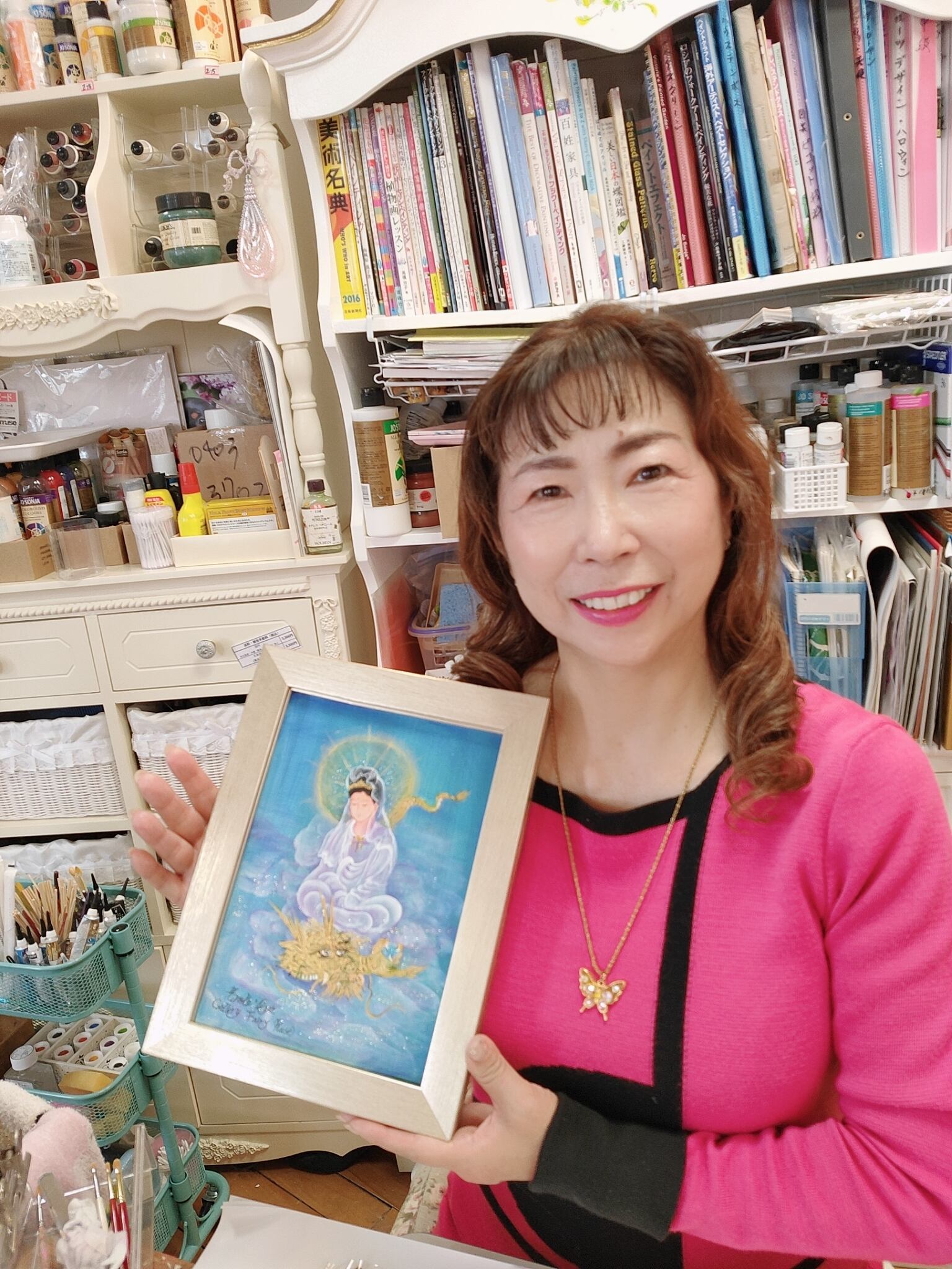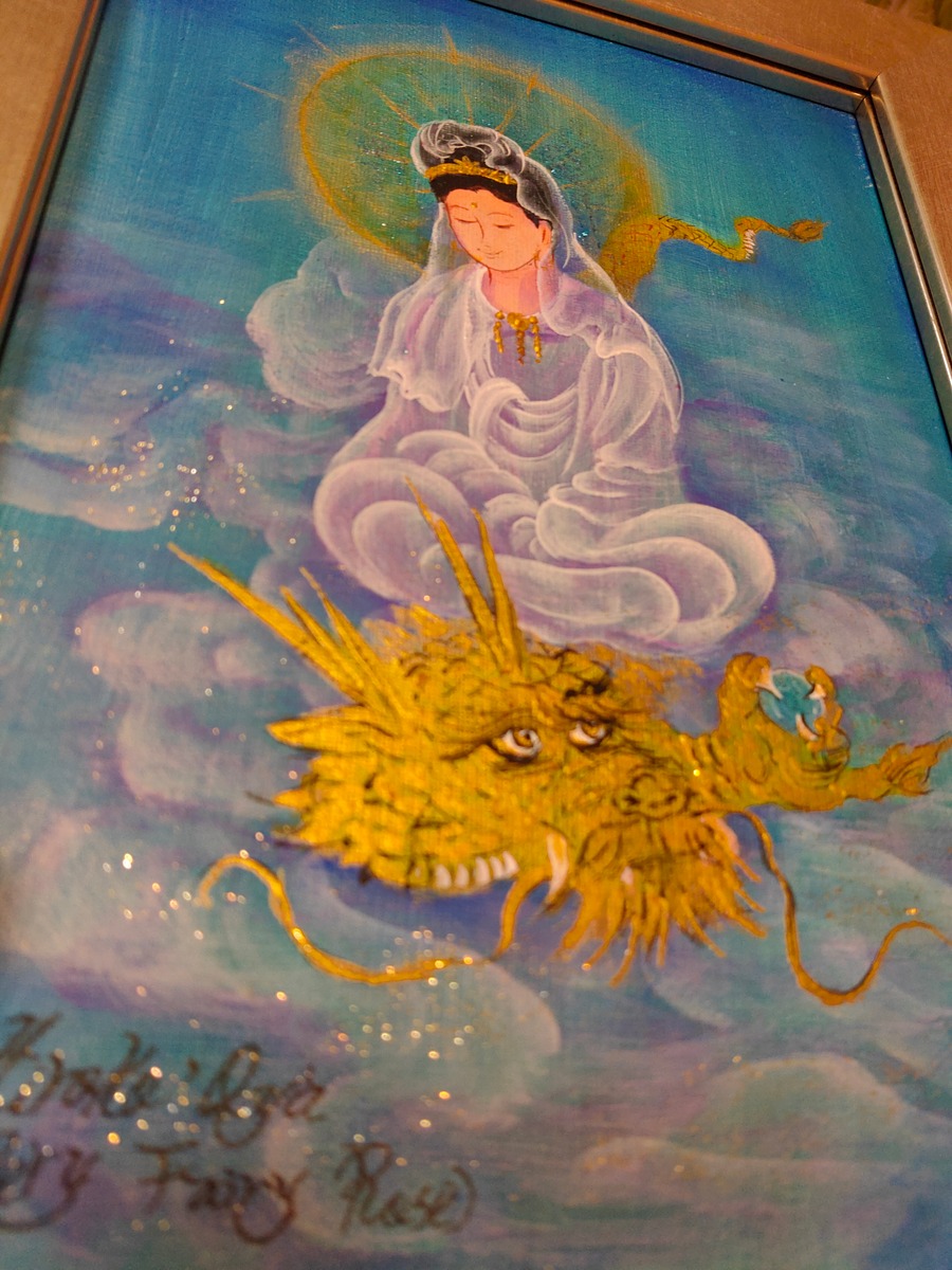 龍の力を自在に操り、幸運をもたらす観音様を描きました♪