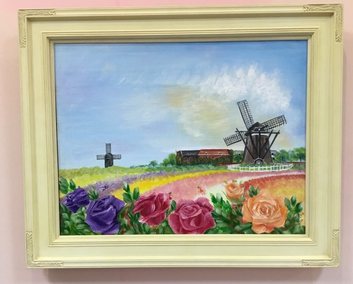 額付き!「ハウステンボスの空 龍雲と薔薇の妖精」画家:大宅広子