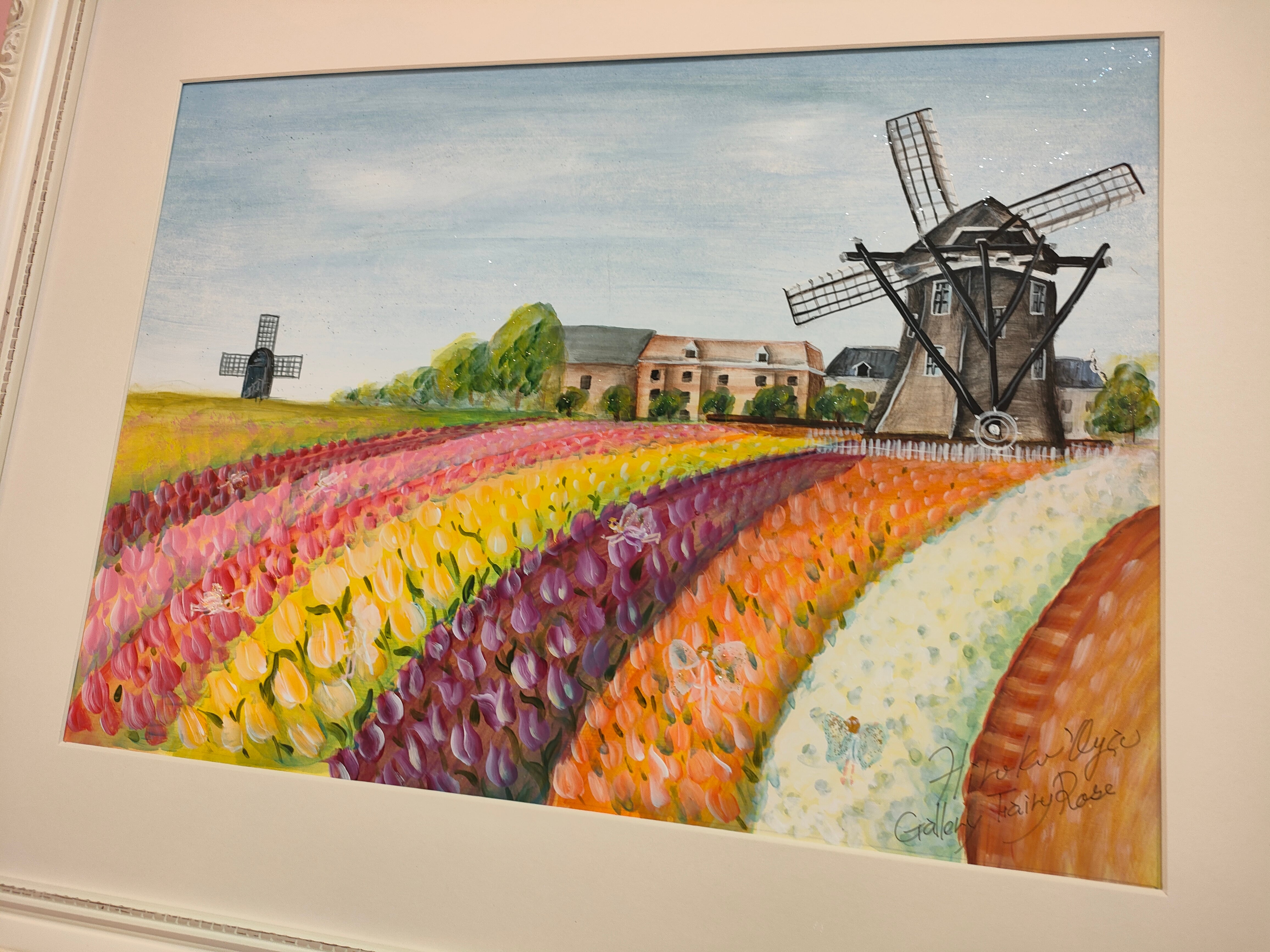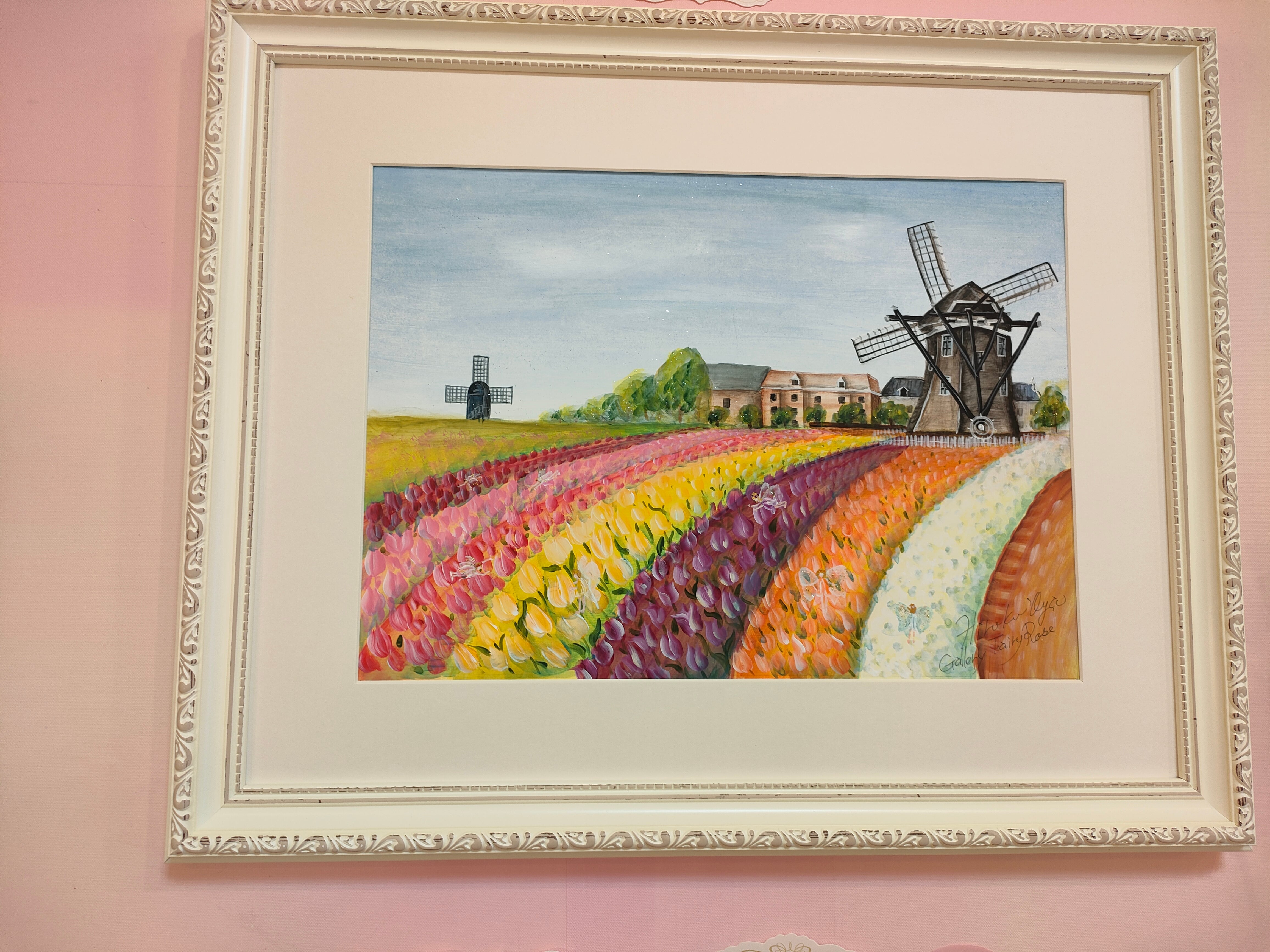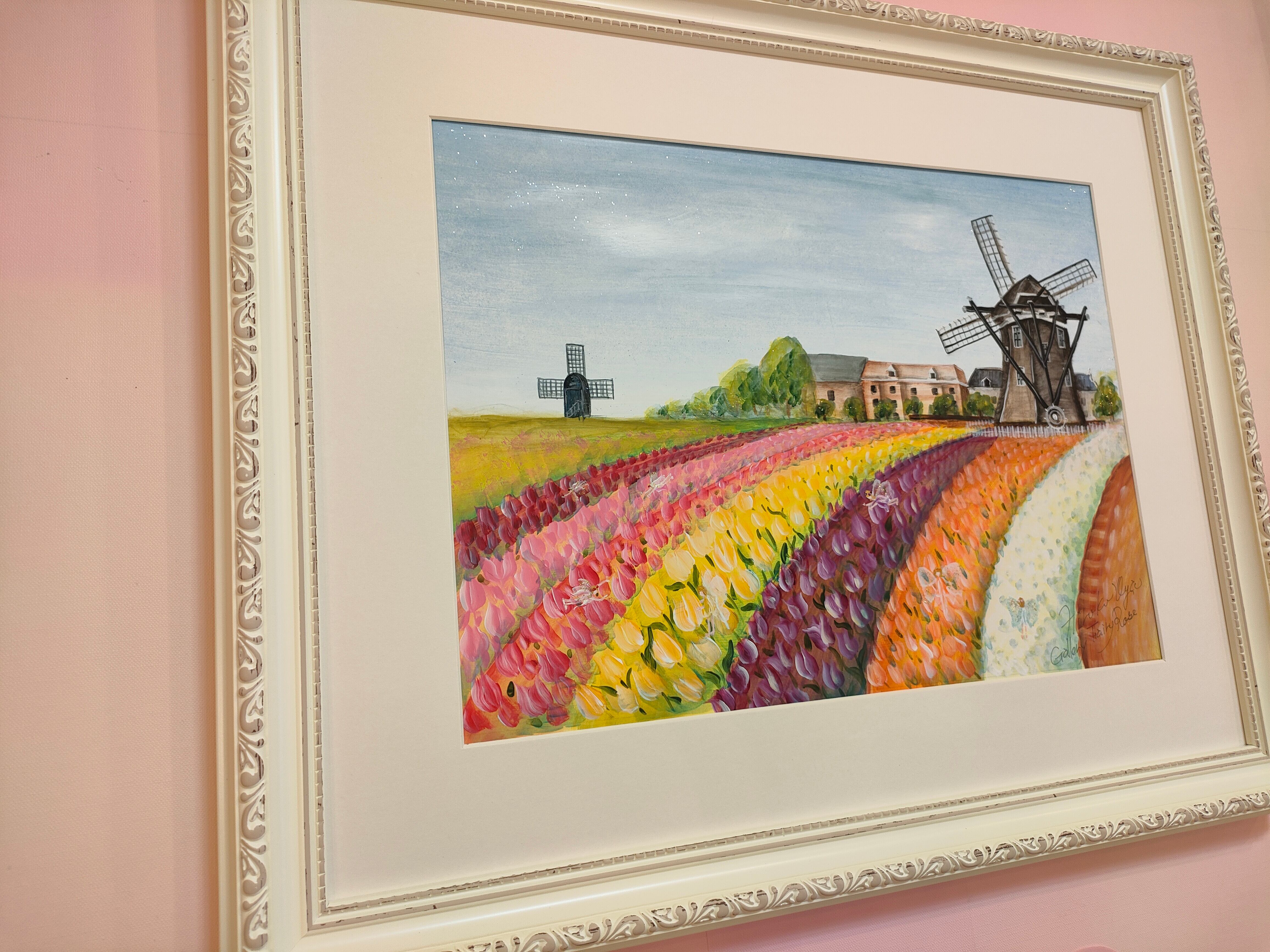 額付き!「春のハウステンボス チューリップと」画家:大宅広子 86